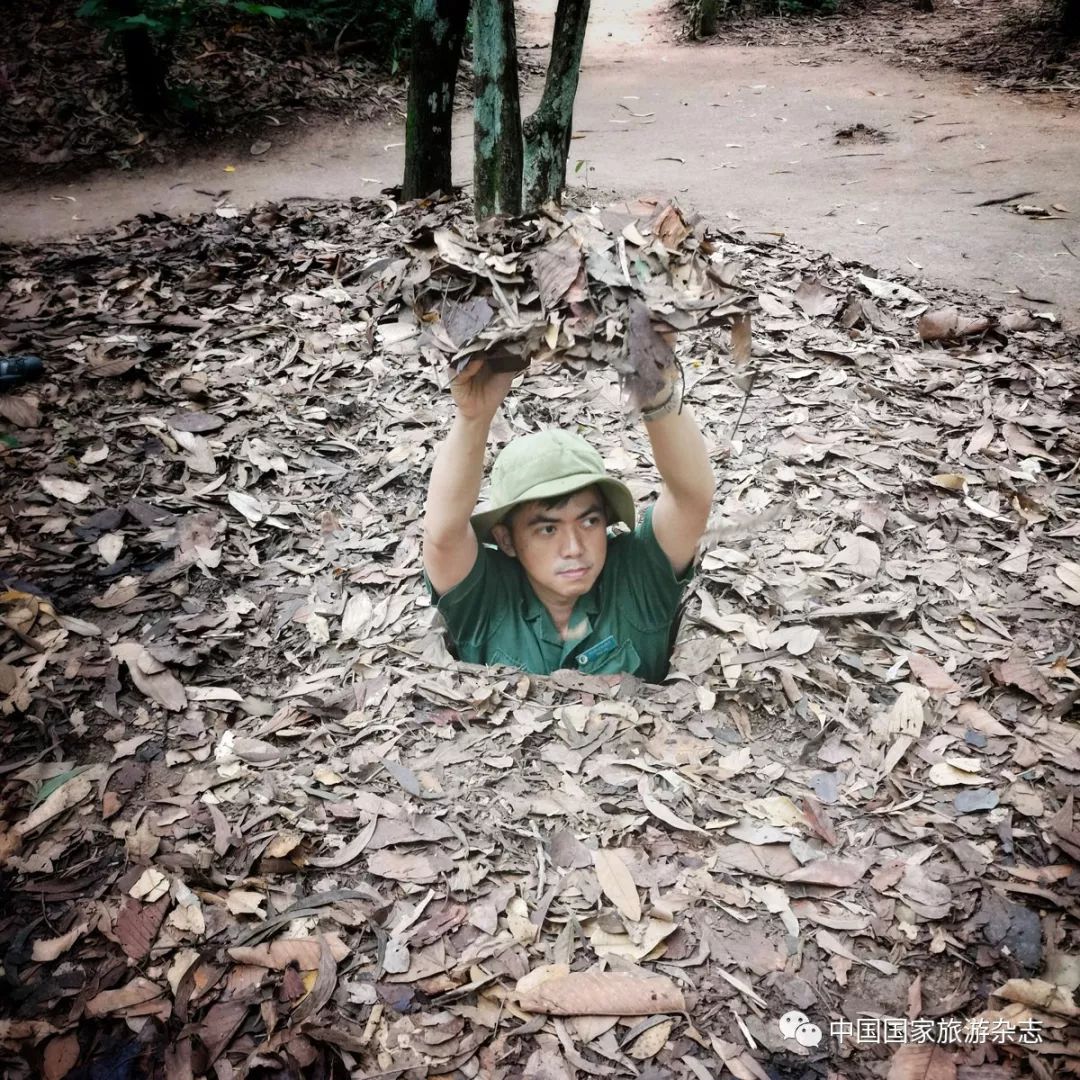 导游是个热情洋溢的小伙子,在讲述地道历史和功能的时候,常常眉飞色舞、手脚并作。 或许是怕我们感受不深,他在行进中不断地强调: “你要想的是一场战争,而且你只有一个人,在丛林中随时会有敌人和不同程度的凶险。 你还要想着你是个入侵者,你的对手会从什么地方突然钻出来……总之,这是一场智慧的较量,也是一个时代的骄傲。