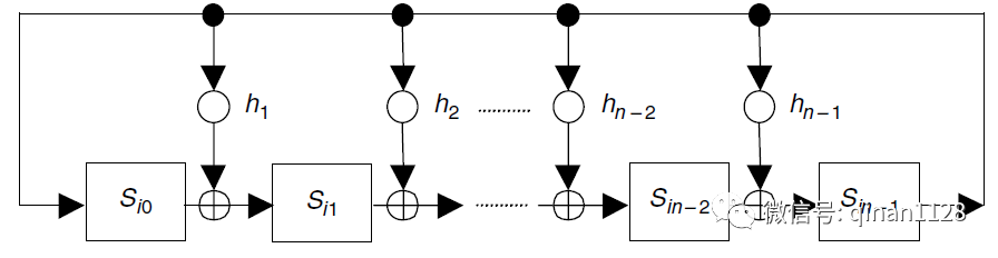 图2线性反馈移位寄存器模型