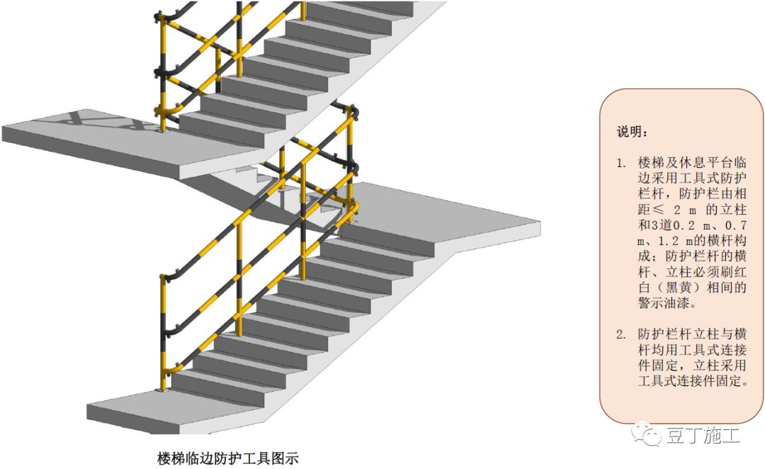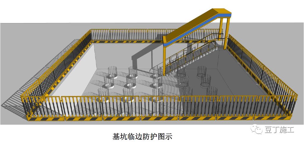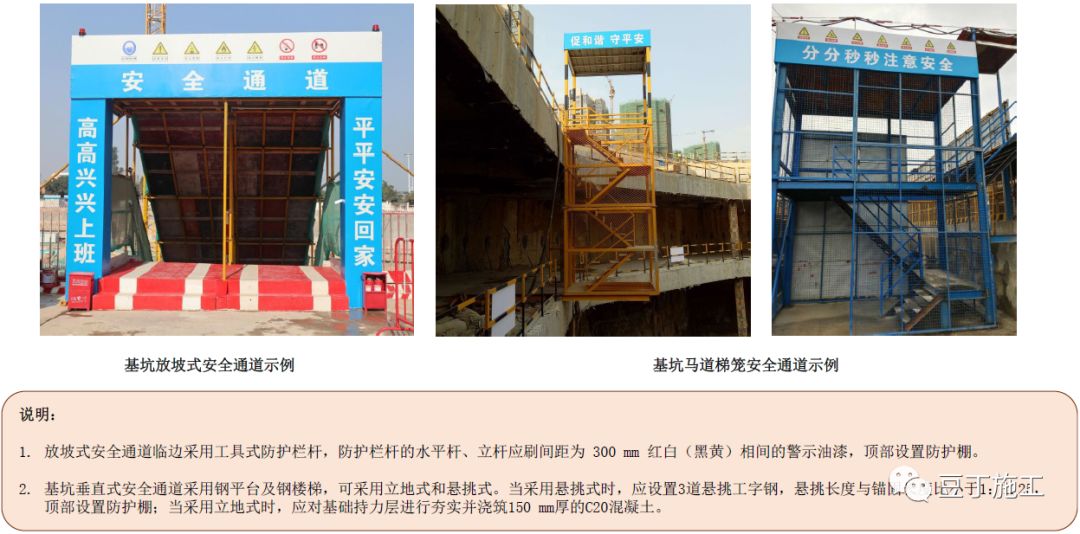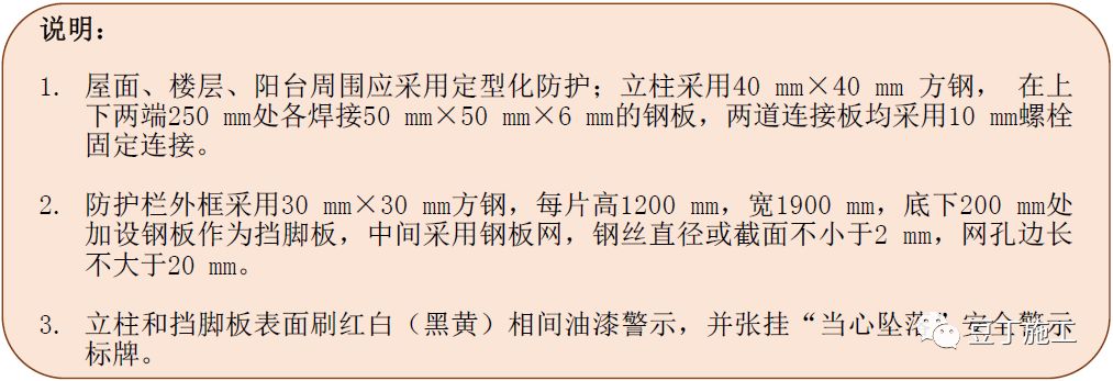 1.2“五临边”是指深度超过2 m的槽、坑、沟的周边,在无外脚手架的屋面(作业面)和框架结构楼层的周边;井字架、龙门架、外用电梯和脚手架与建筑物的通道、上下跑道和斜侧道的两侧边;尚未安装栏板、栏杆阳台、料台、挑平台的周边;在施工程楼梯口的梯段边。五临边必须设置防护栏杆,给排水沟槽、桥梁工程、泥浆池等临边危险部位应进行有效防护。