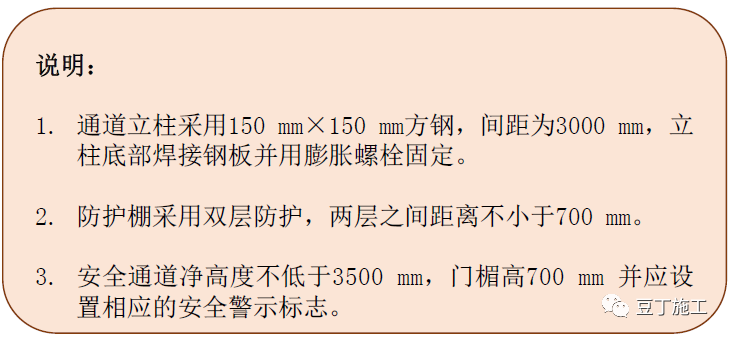 1.11 高处作业安全设施的主要受力杆件应经计算确保可靠,构造措施应符合现行规范的要求。