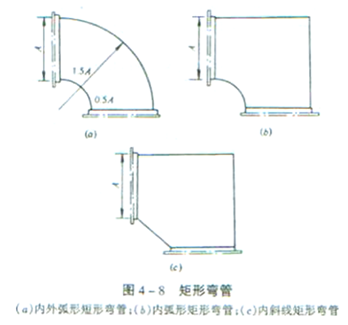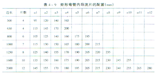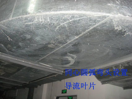 规范要求:4.2.12 矩形风管弯管的制作,一般应采用曲率半径为一个平面边长的内外同心弧形弯管。当采用其他形式的弯管,平面边长大于500mm 时,必须设置弯管导流片。