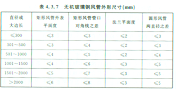 规范要求:4.3.2 金属法兰连接风管的制作还应符合下列规定:1 风管法兰的焊缝应熔合良好、饱满,无假焊和孔洞;法兰平面度的允许偏差为2mm,同一批量加工的相同规格法兰的螺孔排列应一致,并具有互换性。