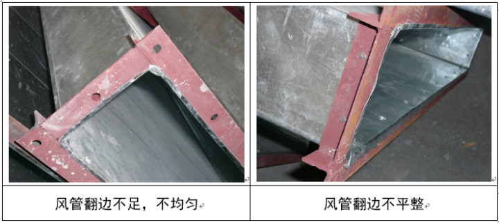 (4) 风管翻边四角开裂或四角咬口重叠。