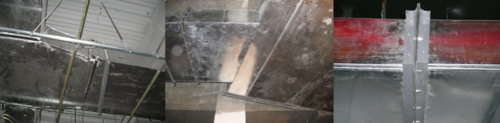 现象:风管法兰连接处漏风,风管系统的噪声增大。如下图。