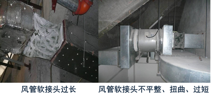 (1) 通风、空调系统选用的法兰垫片材质不符合《施工验收规范》的要求;