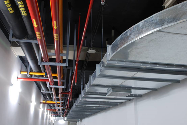 3、风管接口(含调节机构)不得安装在墙内或楼板内,金属风管水平弯管在500mm范围内应设置一个支架,支管距干管1200mm范围内应设置一个支架;