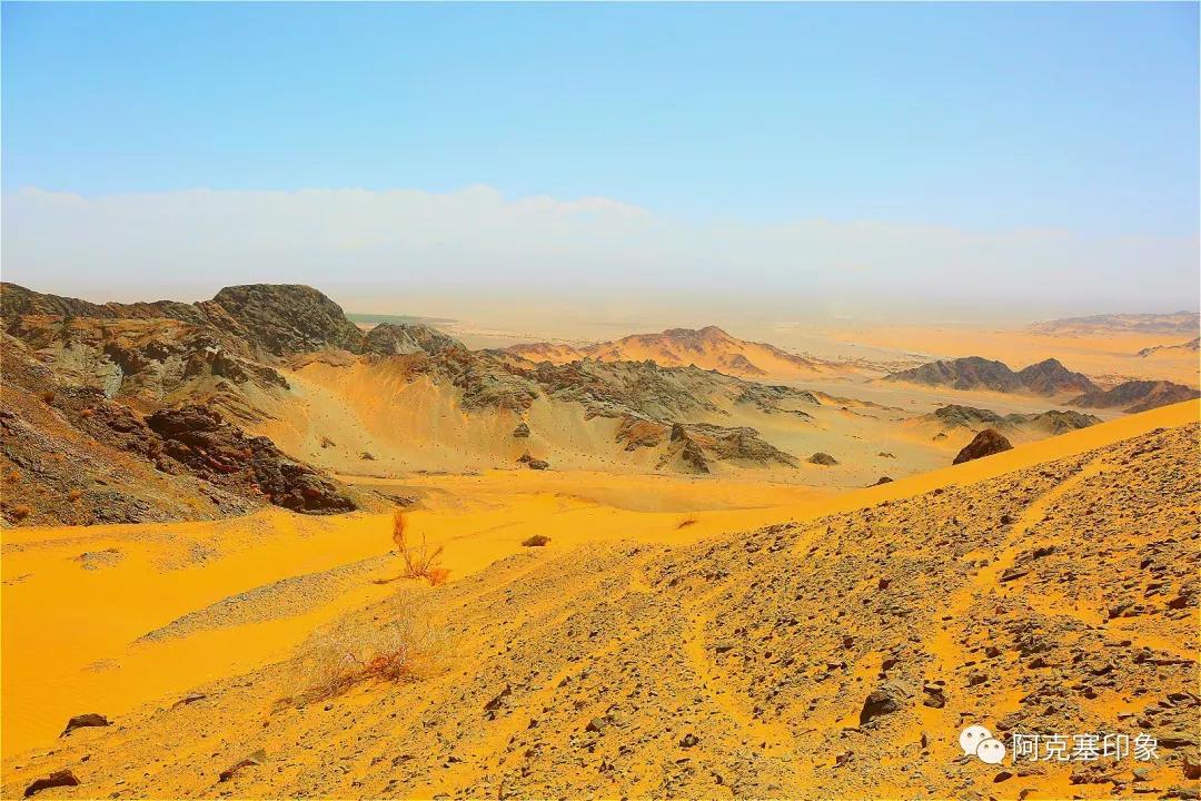 我费了九牛二虎之力爬到了沙山顶端,绵软的沙子,令人进一步退半步,细碎的沙子一尘不染,晶莹透亮。赤脚躺在温暖的沙子里,看蓝天上白云飘走,看飞鸟悄悄掠过,看蜜蜂飞窜瞬间消失,晒着秋日的暖阳,心情惬意而舒畅,尘世间的一切烦恼早就被抛到了九霄云外。放眼远望,多坝沟如一条巨龙蛰伏在大漠戈壁中,见首不见尾,峡谷幽深,风光旖旎,地形奇特。站在汉代烽燧远眺,整个胡杨峡谷尽收眼底,又是一番别样风景,犹如世外桃源,气势雄伟,浓墨重彩,让人惊叹大自然的鬼斧神工,壮怀激烈的一股豪情在胸中油然而生,不由得为祖国的壮丽河山赞叹不已。