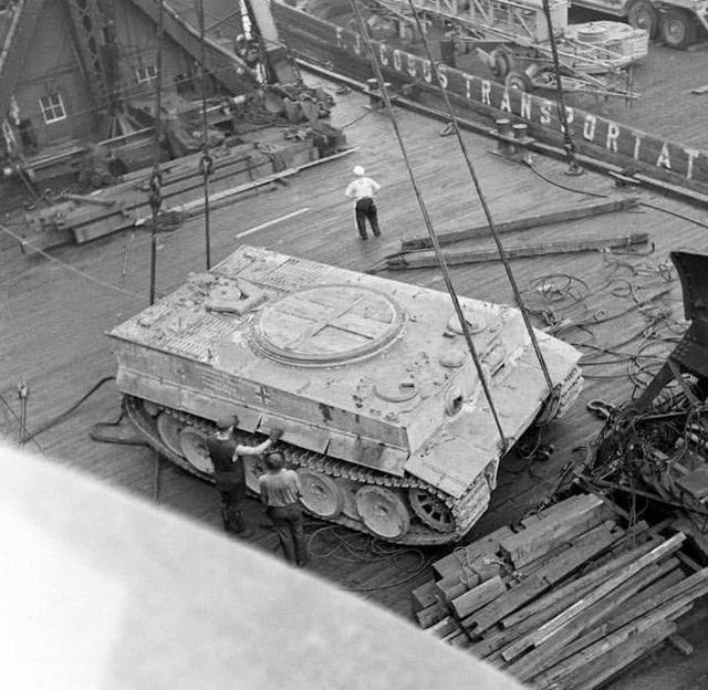 为了能彻底的找到虎式坦克的弱点,美军可谓是下足了血本。他们用轮船不远千里,将一辆缴获的虎式坦克运回国内,进行了彻底的研究。我们来看看下面这些老照片:
