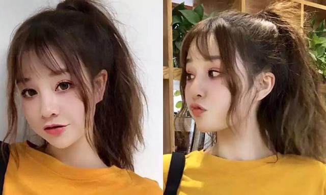 相对比低马尾来说,高马尾带给人更多的俏皮感,可以显得没那么老气,蓬松感很强的一款长发,把一部分的头发这起来,扎成高马尾,就算微风吹来也不容易凌乱感,前面保留了空气感的八字刘海,修饰脸型,更加的显脸小。