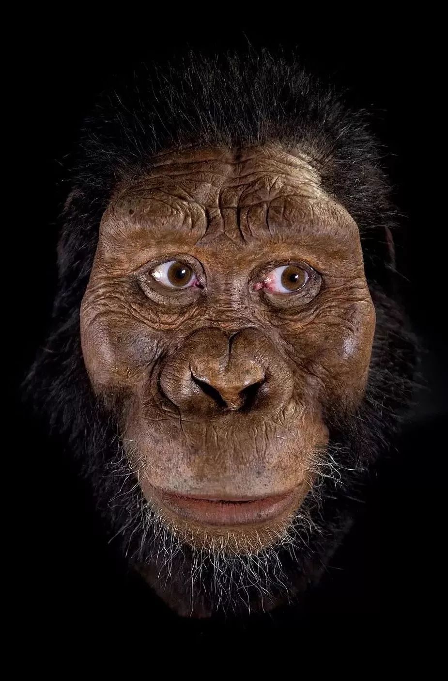 这个湖畔南方古猿的颅骨化石保存完好,脑袋虽小,但颅骨细长,并有突出的颧骨。