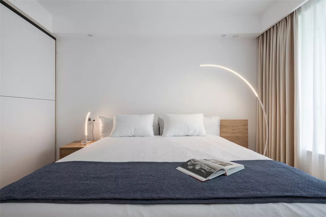 ▲素雅简洁的床单布置,也使得空间轻松闲适。