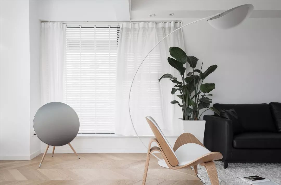 ▲时尚线条感的音响与落地灯,茶几上的艺术头像摆饰,让空间简单却也充满了档次的气质。