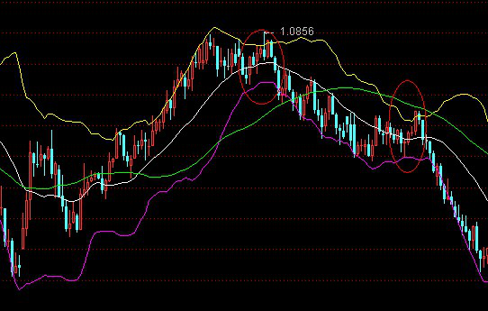 当价格运行在BOLL中轨和下轨之间的区域时,只要价格不冲破中轨,说明市场处于空头行情中,逢高点卖出,不考虑买进。
