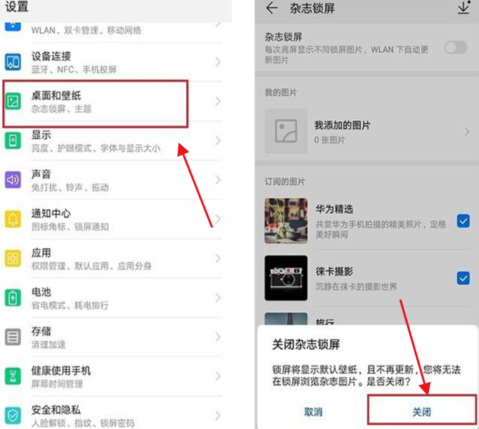 操作流程:【设置】-【桌面和壁纸】-【杂志锁屏】