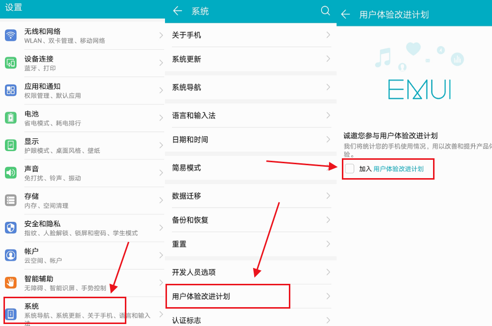 操作流程:【设置】-【系统】-【用户体验改进计划】-【加入《用户体验改进计划》】