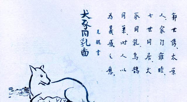 《护生画集》犬豕同乳图(丰子恺绘、弘一法师书)