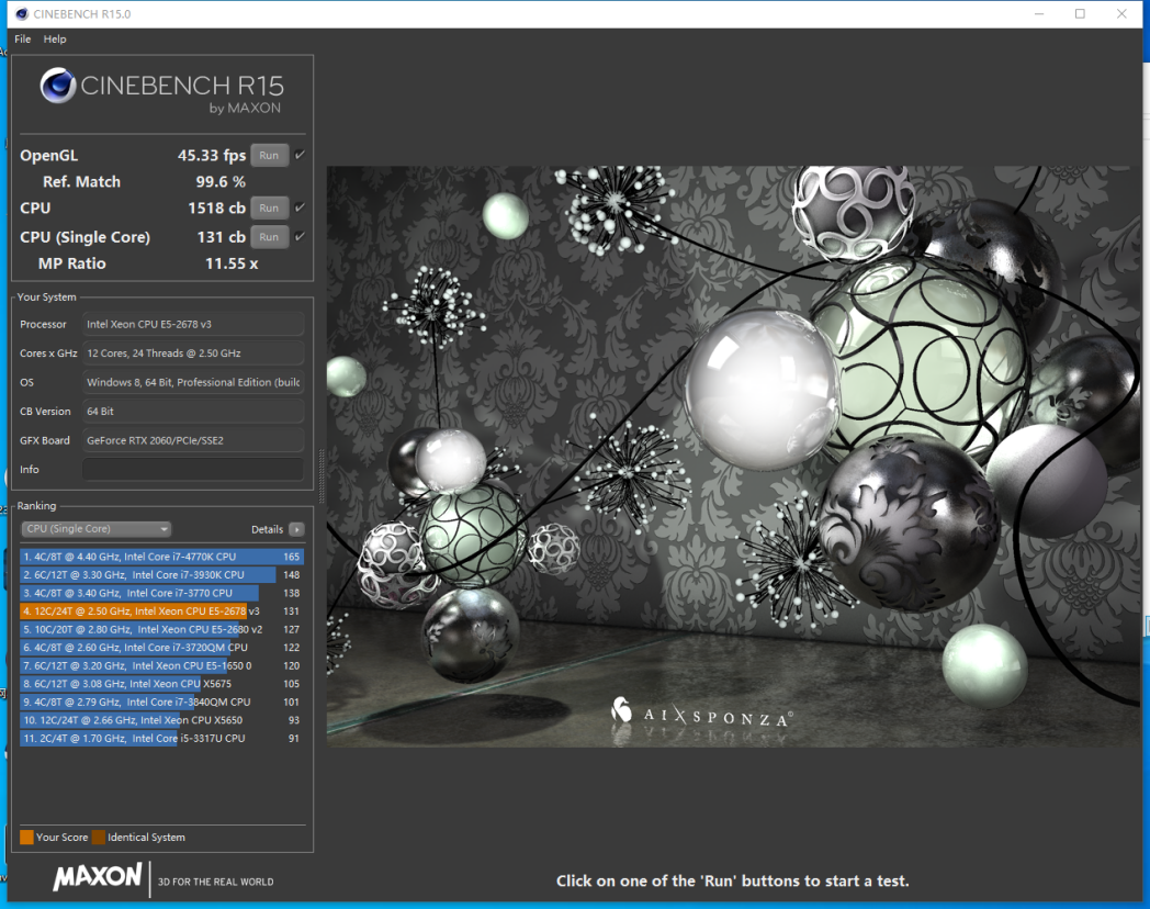CINEBENCH业界公认的基准测试软件,这次我们测试使用了CINEBENCHR15,我们分别看看它们在CINEBENCH R15的表现。