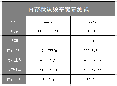 从上面数据可以看出,DDR4默认频率无论是带宽还是延迟性能都比DDR3默认频率显著提升。