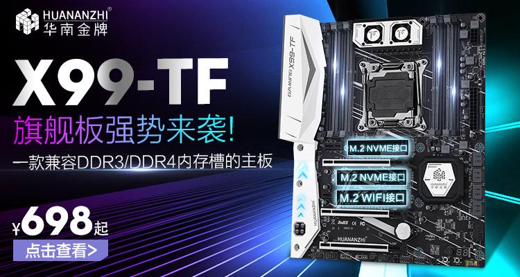 作为华南金牌2019年推出的旗舰级产品,X99-TF不仅可以上DDR3内存,还可以上DDR4内存,可三可四,一个主板两种选择。(DDR3内存通 道仅以下CPU支持 :E52678V3/2696V3/2629V3/2649V3/2669V3/2676V3/2673V3),配备M0S散热风扇,板载带有双M.2和M.2WIFI接口,一体化挡板铠甲和开机重启键,并且售价也不高,仅售698元,可以称之为新一代“妖板”。下面我们就来看看X99-TF的开箱及测试数据。