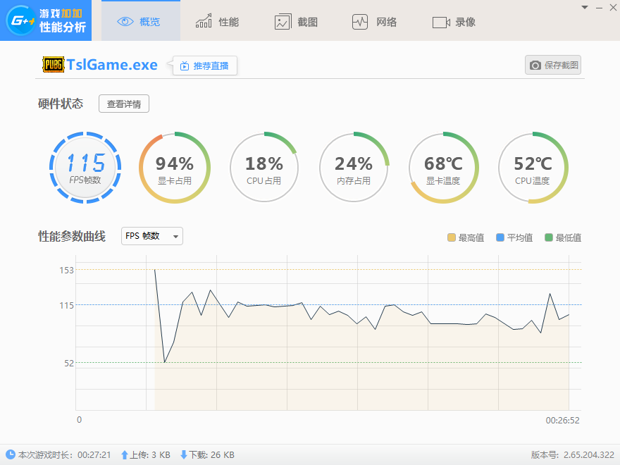 可以看到选用DDR4内存,测试平台平均游戏帧率略微提升至115fps,幅度并不大,测试中发挥正常。
