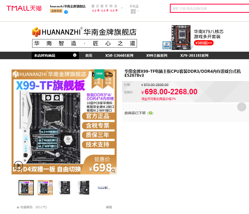 据悉,9月8日开始,华南金牌X99-TF主板进行了第二轮现货开卖和预售订单发货,截至今天9号为止,官方宣布第二批主板已告售罄,笔者发现华南金牌天猫旗舰店X99-TF的链接已经暂时下架了。