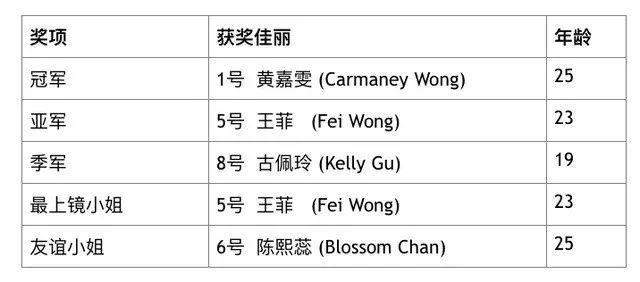 黄嘉雯还夺得“最具体态美佳丽”称号。