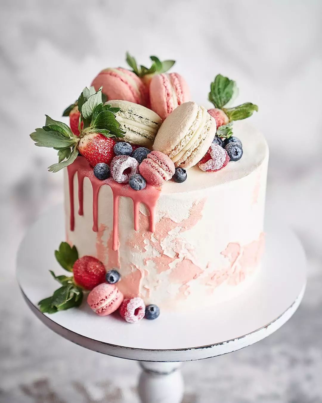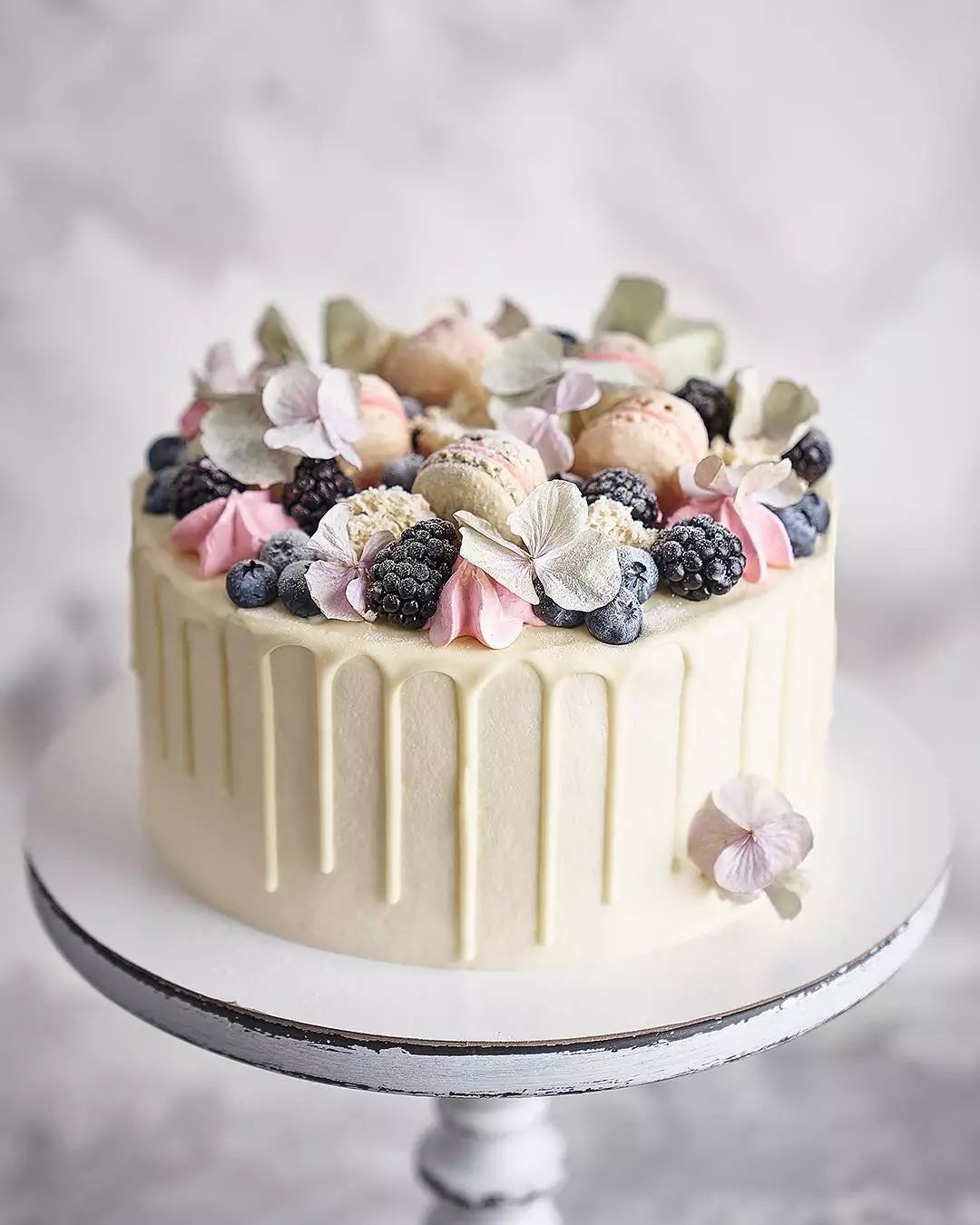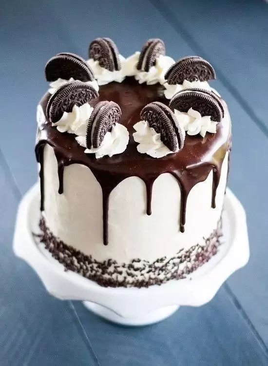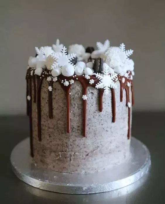 5、把混合好的奶油奶酪糊,剪小口,沿着蛋糕的边缘挤完一圈,状态对的奶油奶酪糊就会不规则的滴下来,稍加装饰,都很美。