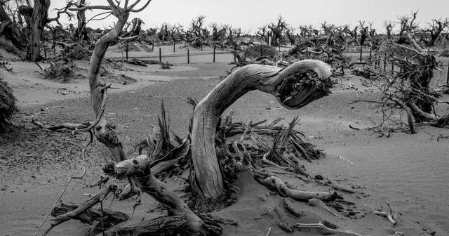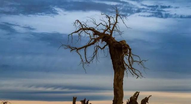弱水河畔、居延海边是胡杨的故乡,这里的39万亩胡杨林是当今世界仅存的三处天然河道胡杨林之一、是阻止巴丹吉林沙漠向北扩散的重要屏障,是中国西部生态的天然宝库……苍龙腾越,虬蟠狂舞,千姿百态,美妙绝伦……黑河水断流、居延海干涸,70多万亩胡杨林现仅残存30万亩。哀叹胡杨的远去也许更应该哀叹人类自己,拯救胡杨林便是拯救人类自己的家园。