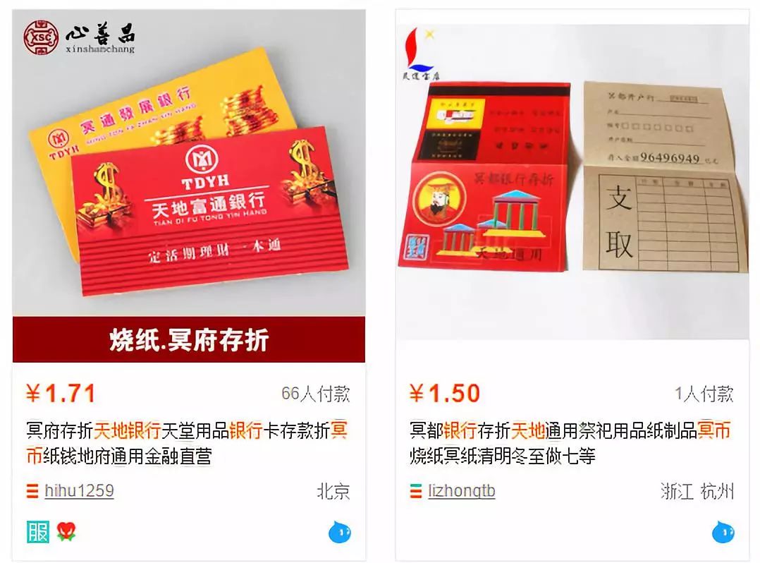 在国外,中国的冥币被称作“祖先币”(ancestor money),意思就是给祖先用的钱。而冥币界一般被两家银行所垄断,天地银行和冥通银行。