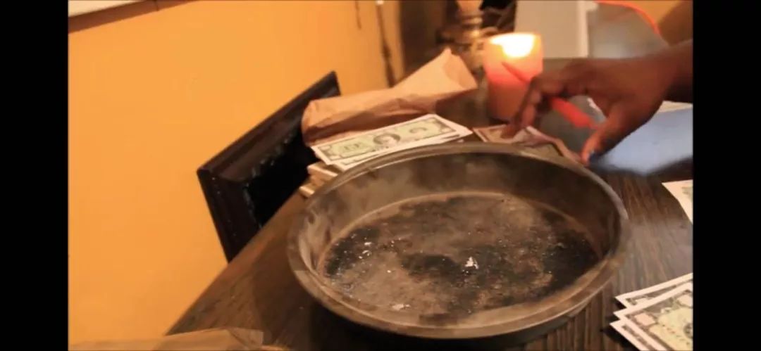 最后她甚至在桌上把冥币分了不同的好几堆,像是给朋友们寄明信片……