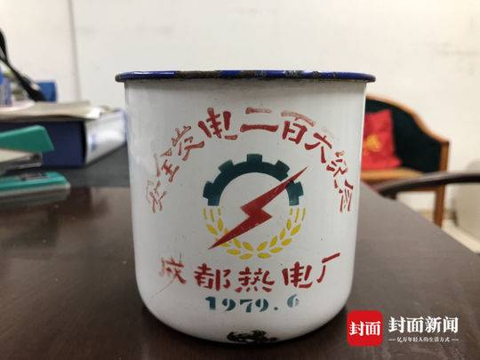 “这个搪瓷杯也有意思。”在叶键捐出的搪瓷杯上,印着“安全发电两百天纪念”的字样,这是成都热电厂在1979年6月推出的今年品。1978年,改革开放乘着时代的浪潮来到人们的生活,为了保障生产安全,成都热电厂要求安全发电,“1979年6月正好发起安全发电200天,于是有了这个纪念品。”