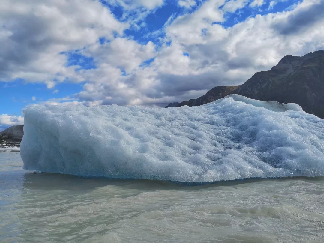 因她的消融而汇聚成的塔斯曼冰川湖就是一把自戕的利刃,它的热蚀作用不断地侵蚀着冰川让它再次成长成为了不可能。