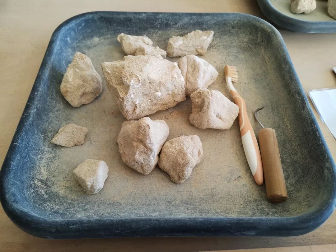 甚至还有个专门的房间放了许多小块的石灰石,提供了刷子和钩子让你可以自己从石头里挖出贝类化石。