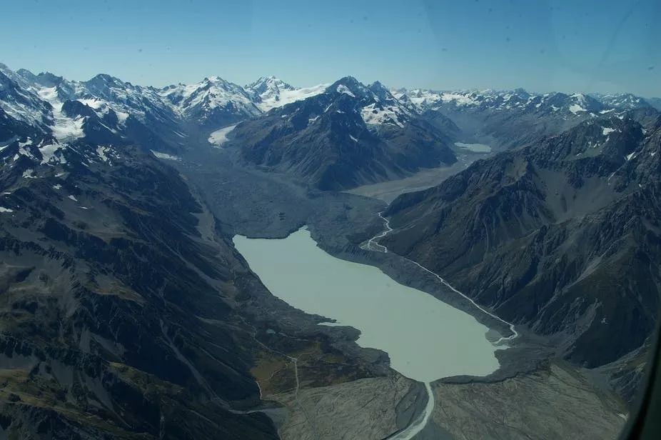 90年代时,冰川终端的几个小水潭最终汇聚在一起形成了湖泊——到如今,塔斯曼冰川湖已有七公里长,数百米深。
