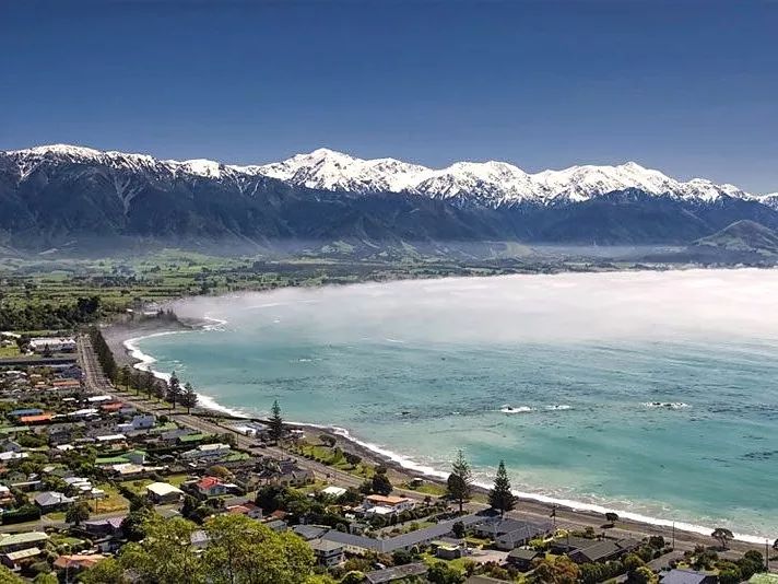 因而在凯库拉可以看见雪山遇见大海的奇观——近岸的海底俯冲至一千多米深,而海岸线附近的雪山则隆起两千多米高。