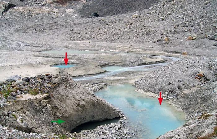 ▲ 绿箭头所指即为死冰,红箭头所指即为kettles holes;resource: SwissEdu.ch