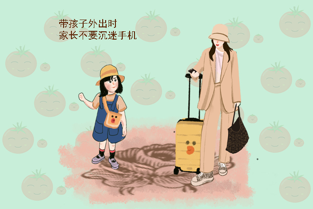 带孩子外出时,家长不要沉迷手机。