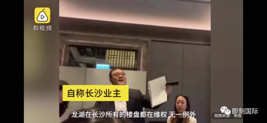 8月27日,龙湖地产董事长吴亚军在香港召开龙湖集团2019年中期业绩发布会,一名自称从长沙赶来的龙湖业主直接站起身来手持话筒激动而哽咽地讲述龙湖长沙业主艰难维权的过程。这位业主质问吴亚军:“我想问一下吴女士,您是不是已经知道龙湖在长沙是维权的代名词?龙湖在长沙的楼盘都在维权,您知不知道龙湖地产请黑社会打维权业主……”