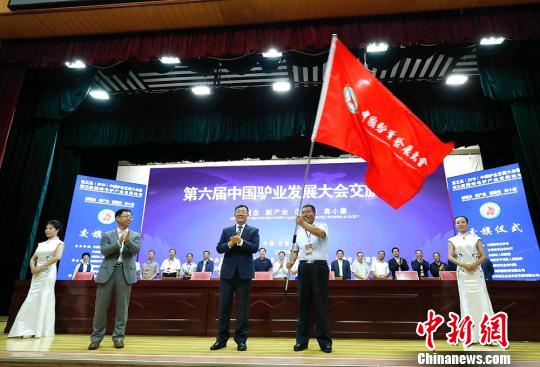图为现场举行第六届中国驴业发展大会交旗仪式。 赵永祥 摄