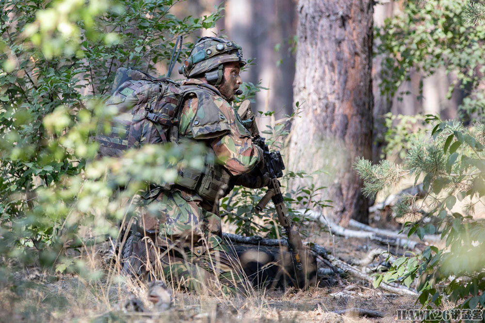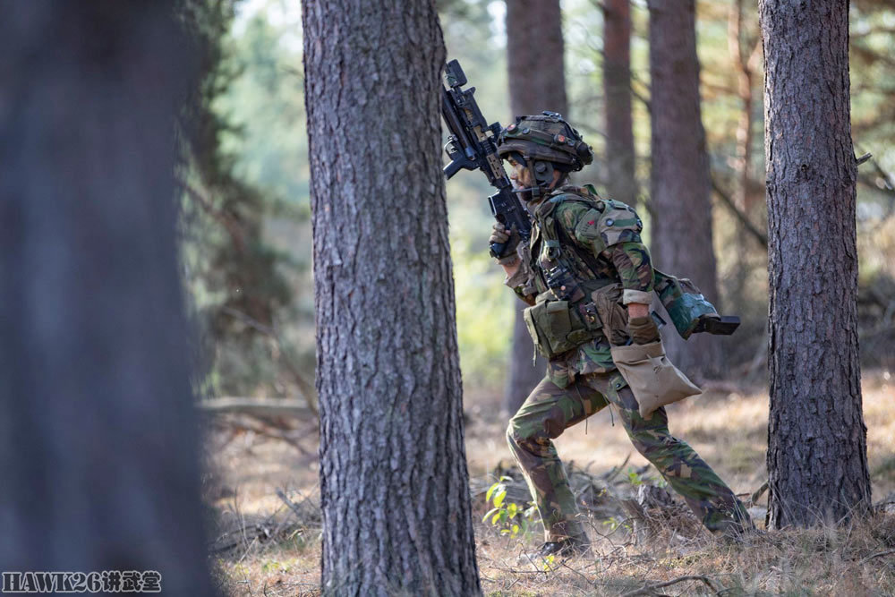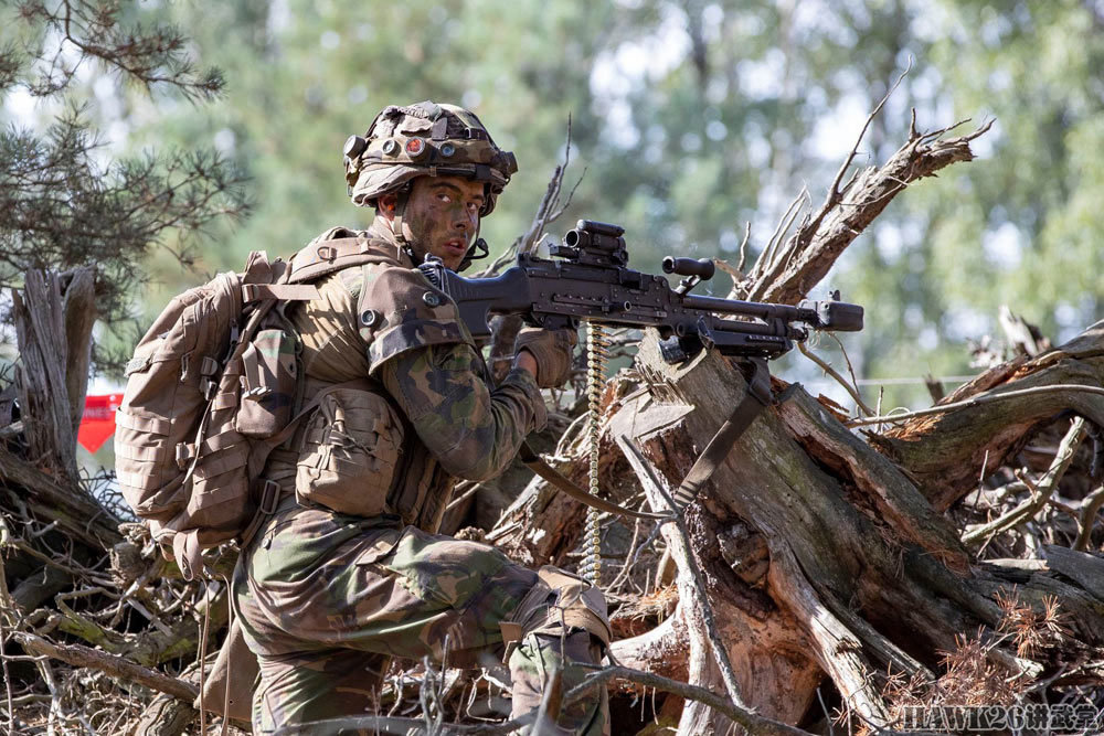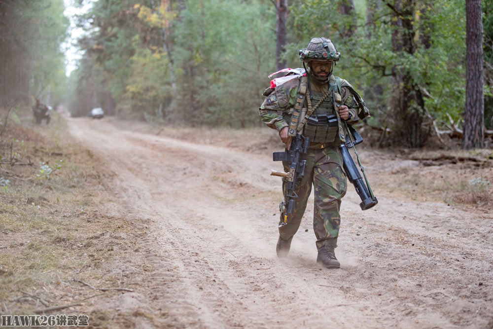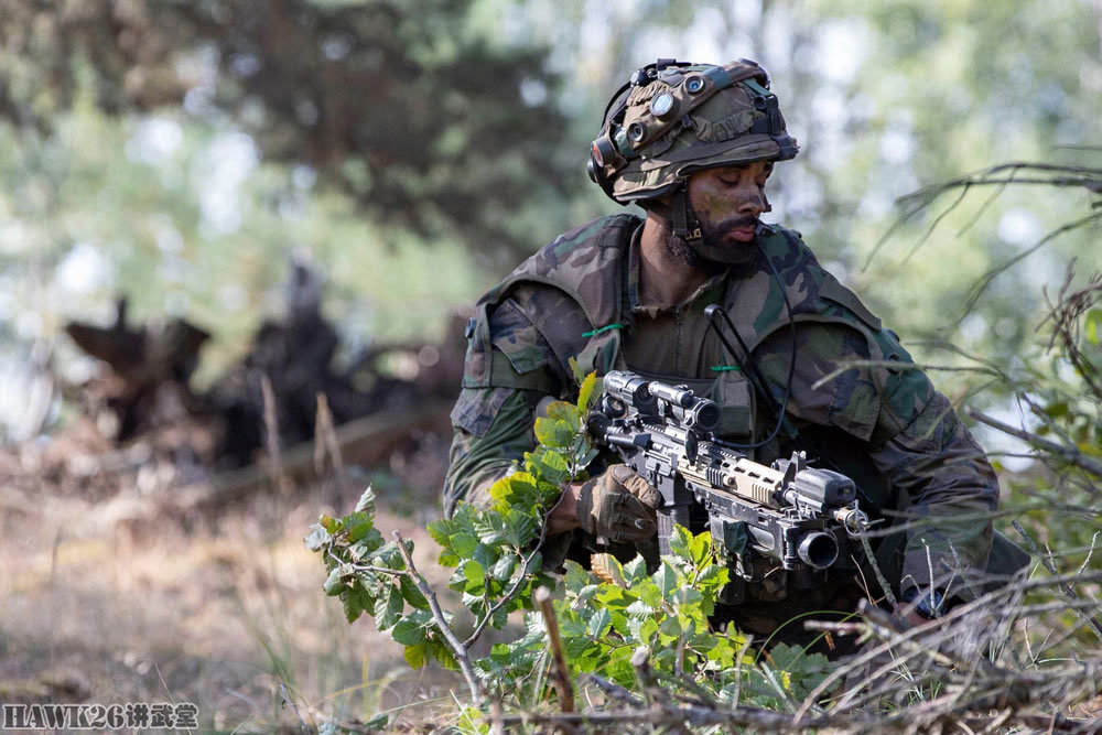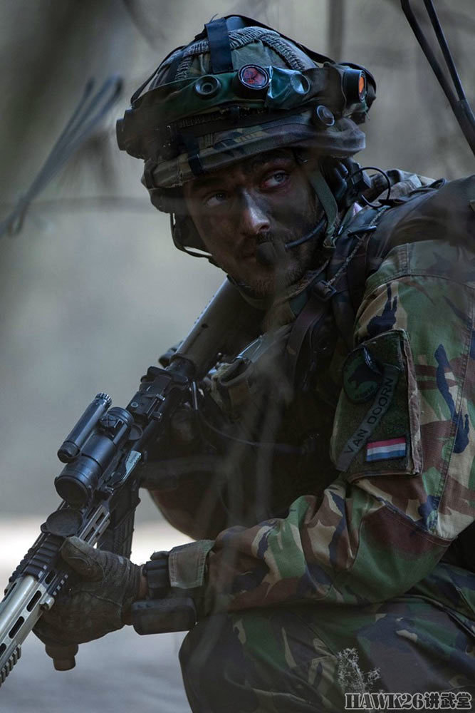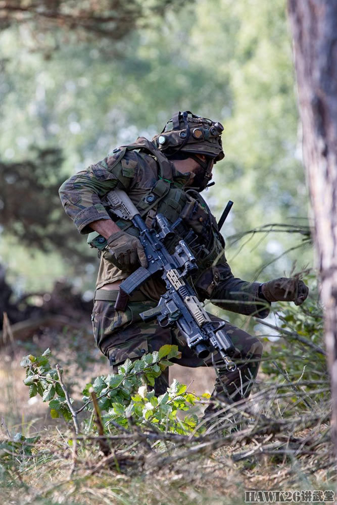 这名士兵使用的是C7NLD步枪,配备了下挂榴弹发射器,串联使用了红点瞄准镜和倍率镜。