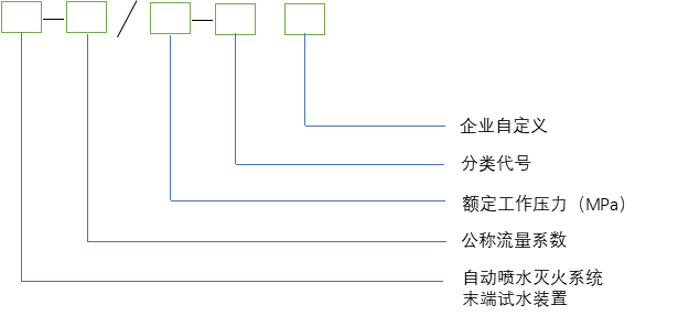 末端试水装置型号规格由产品代号(ZSPM)、性能代号、分类代号等组成。