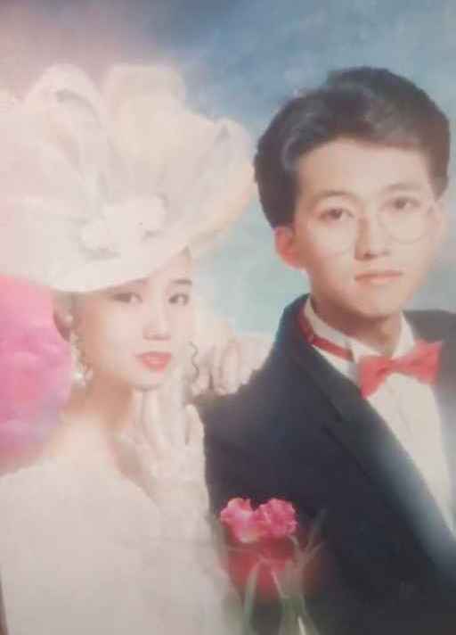 这张结婚照有九十年代的感觉,也是很般配的一对璧人,佳偶天成。