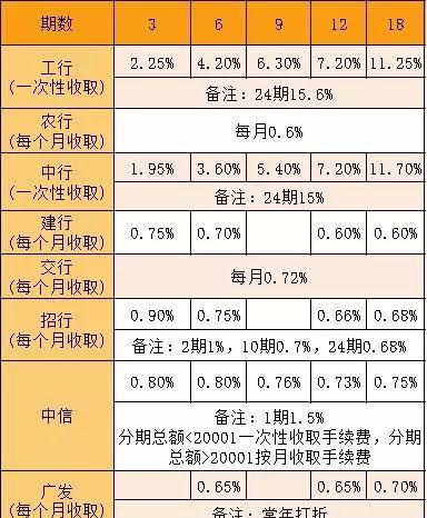有朋友说,玩卡时如果遇到分期还款的情况,既然如此,那就需要对各行的分期费率有个了解,一般来说:
