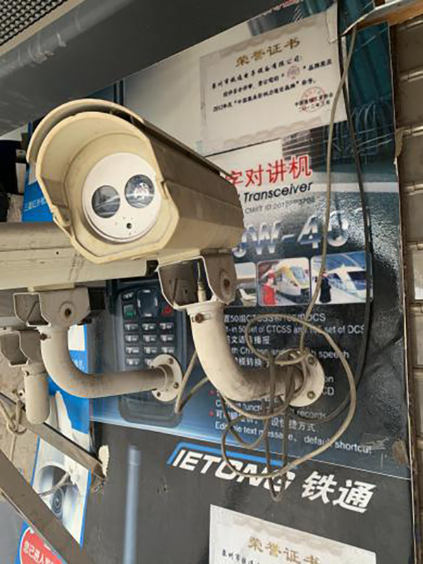 物品摆放“不修边幅”:大型商场的店家认为销售物品的摆放是一门艺术,如何将产品合理排布在干净整洁的展示区域、如何突出镇店之宝从而吸引顾客进店消费至关重要。然而,虬江路市场的店主不会把心思花在销售物品的摆放上,甚至有些物品的放置可以说是“不修边幅”。如用一个废弃的塑料泡沫盒子当作架子放话筒、旧的CD机不擦灰尘就“C位出道”、被自己的电线绕“脖子”几圈而且色泽偏黄的监控摄像头就安装在最醒目的位置,等等。虬江路市场的店主问候顾客的第一句话往往不是“你好”,而是“找什么”。因为对于第一次来的顾客来说找到自己需要的商品实在费劲。