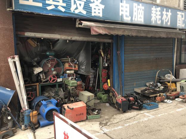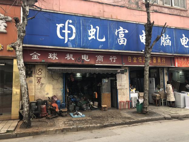 如今虬江路市场仅剩的几家出售旧马达的店铺。