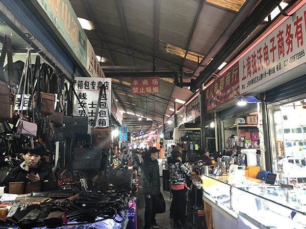 之所以说虬江路市场颇具特色,除了上述类似地铁商业街的集中式商业、在老房子里开设的沿街店铺和在大棚下类似于展位的隔间商铺以外,还因为其独特的销售风格。