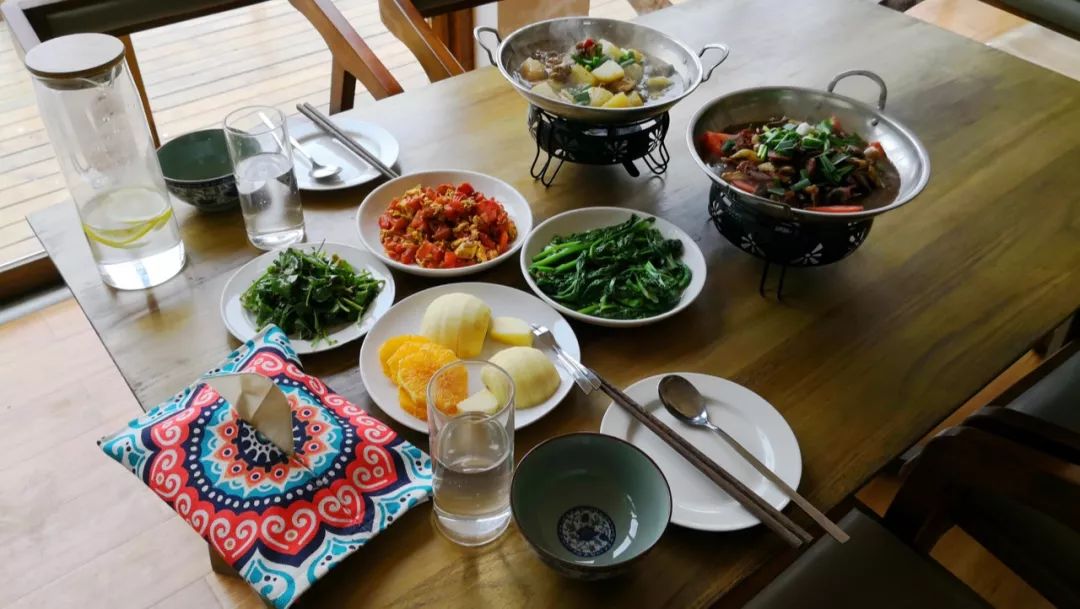厨师郁大春是地地道道的张家界人,曾经自己开饭馆,他在网上自学菜品设计,加上多年的好厨艺和取自当地的原材料,保证所有的菜品都有颜有味,绝对新鲜和健康。
