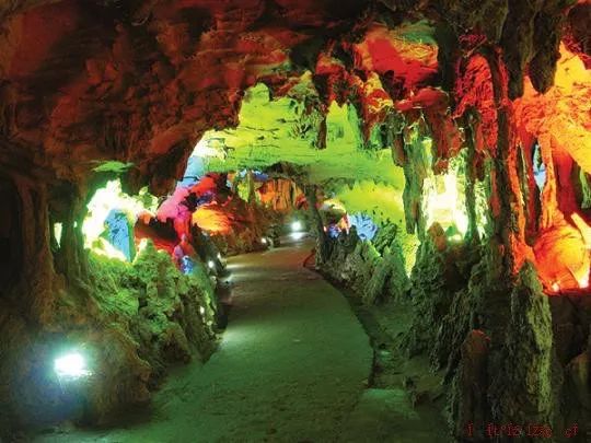 车程25分钟,就能到黄龙洞景区,这里有成千上万的白玉池和钟乳石峰,它们是世界著名的溶洞奇观。