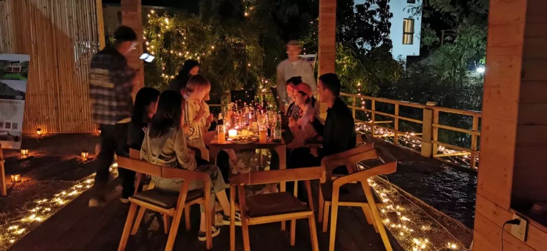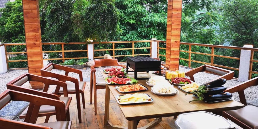 晚上这里就变成了小酒吧,喜欢烧烤的朋友,可以组团烧烤趴,点着星星灯,喝一壶好酒,感受静谧的大山夜生活。