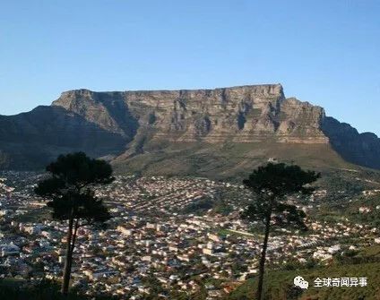 桌山(又名特布尔山)海拔1,086米,大约形成于志留纪或奥陶纪。 由于其顶部异常平坦且可以俯看开普敦半岛,因此桌山成为了南非的一个著名的旅游景点。 桌山有云覆盖,云层是刮东南风迅速形成的,它是高原植被繁茂的主要因素,5个高山水库贮藏的水就是由冬天西北风带来的雨水,山顶的年降雨量为1525毫米
